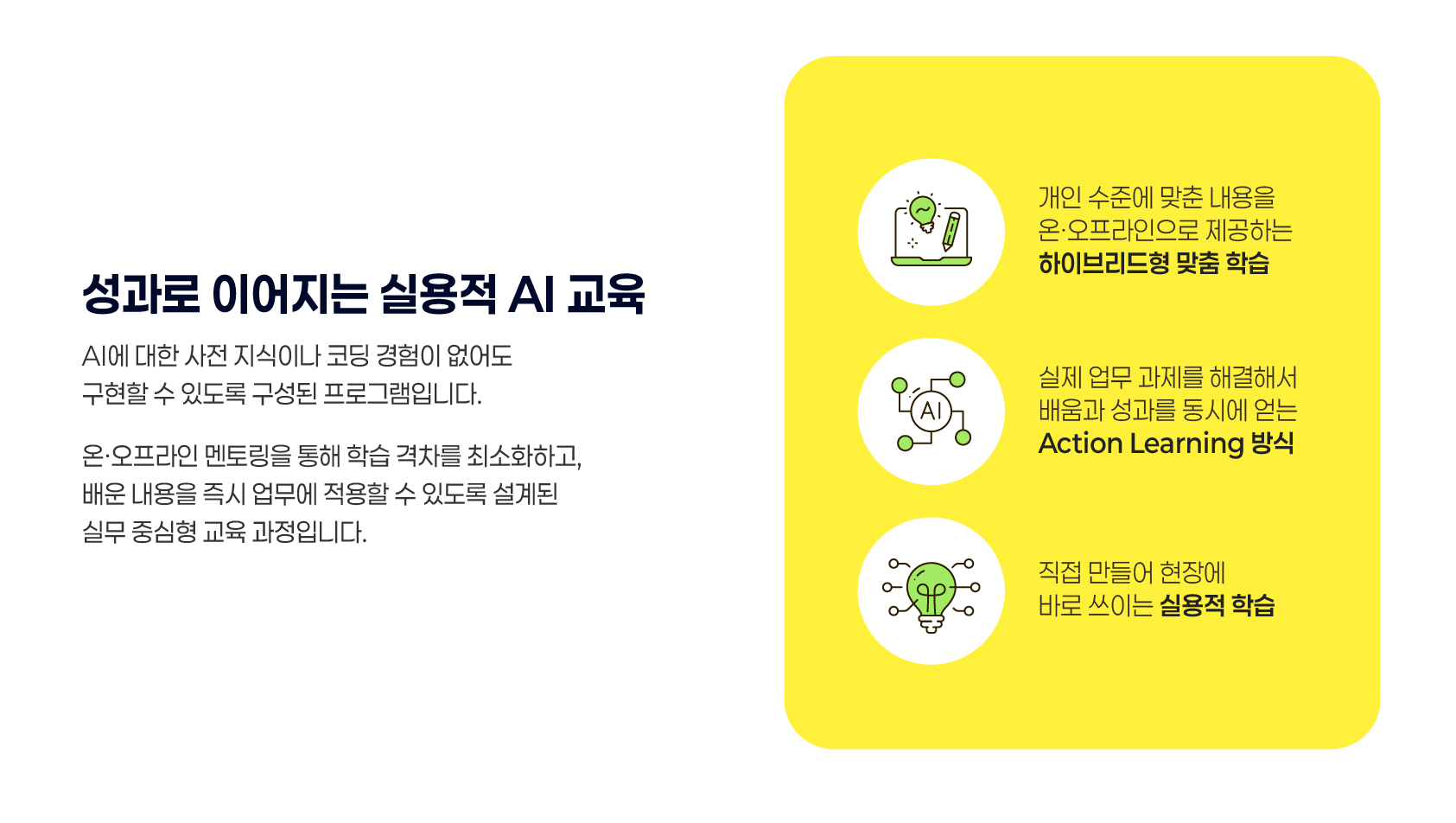 현업에서 실제로 ‘쓰이게’ 만드는 AI 활용 경험 중심 컨설팅입니다.
